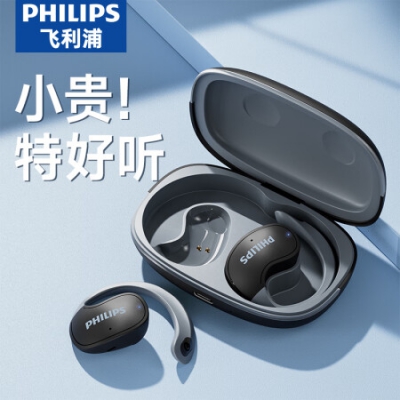 飞利浦(PHILIPS)骨传导概念真无线挂耳开放耳夹式不入耳运动跑步蓝牙耳机长续航高端降噪通用苹果华为TAT2708-黑