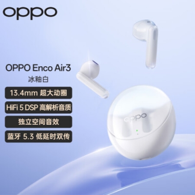 OPPO Enco Air3 真无线蓝牙耳机 半入耳式通话降噪音乐运动耳机 蓝牙5.3 通用苹果华为小米手机 冰釉白